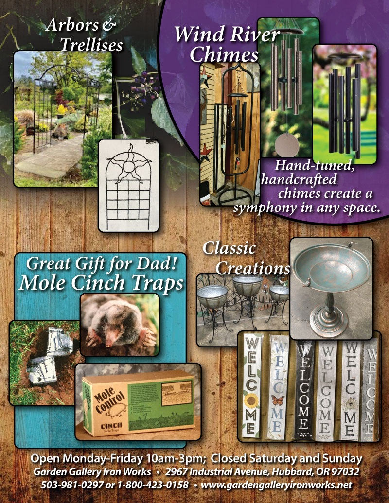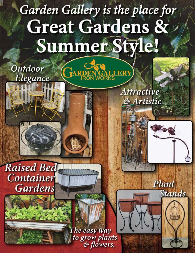 Garden Gallery Iron Works   •   2967 Industrial Avenue, Hubbard, OR 97032   •   503-981-0297 or 1-800-423-0158   •  info@gardengalleryironworks.net